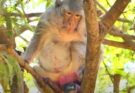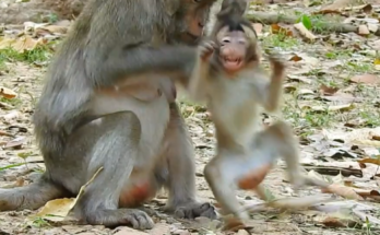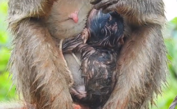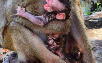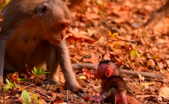 In a tender and heartwarming moment, a gentle mother monkey patiently encourages her tiny baby to take its brave first steps. Staying close, she watches with loving eyes as the …