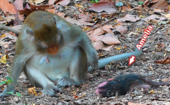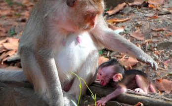 In the quiet canopy of the forest, an intimate moment unfolds between a mother monkey and her young. The emotional bond between them is palpable, woven through gentle gestures and attentive care. As the mother carefully manages her milk, she guides her baby through the delicate process of weaning, a natural yet emotionally charged transition. Every action she takes is deliberate—each pause, each soft nudge, a silent communication of love and reassurance.