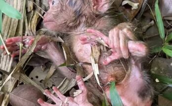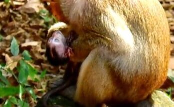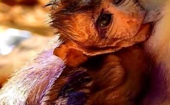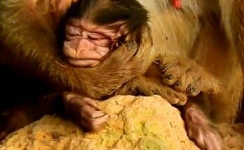 So pitiful to see the little newborn monkey lying helplessly on the cold ground, eyes barely open, its tiny body trembling as it searches for warmth that never comes. Moments …