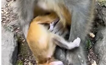 A poignant scene unfolded in the quiet forest as the oldest mother monkey gently attempted to wean her baby. The tiny infant clung tightly to her, its small arms wrapped …