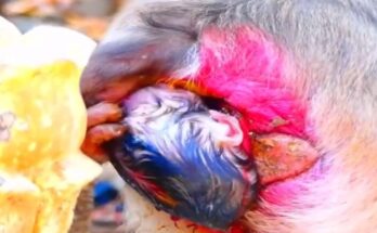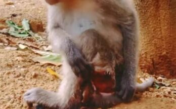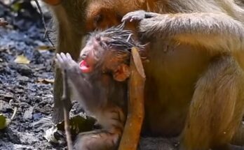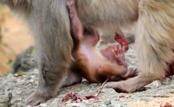 Poor little monkey lies in pain, deeply hurt and waiting for someone’s gentle help. His fragile body trembles weakly against the cold ground, each shallow breath revealing the depth of …