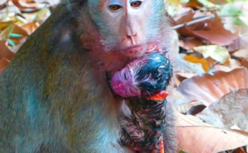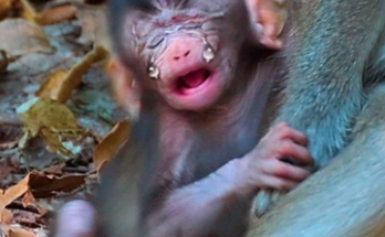 Newborn Baby Monkey Seeks Warm Milk as Young Mother Learns to Care captures a tender and emotional moment in the wild. The tiny infant, still weak and unsteady, clings closely …