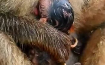 Beautiful moment unfolds as mother monkey joyfully welcomes her lovely newborn baby into the world Read More