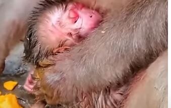 New Life Begins: Young Primate Mom Delivers Healthy Baby in a Touching Jungle Scene